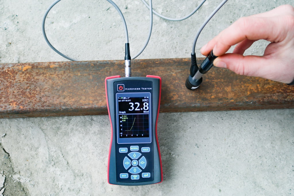 The Leeb method of hardness testing of metals is the most popular because of its ease of use. The user does not need to have special skills and or knowledge in the field of hardness measurement, to perform the measurement, it is necessary to load the impact body of the probe of the device, install the probe on the tested surface, press the probe release button and the hardness value will be displayed on the device screen.